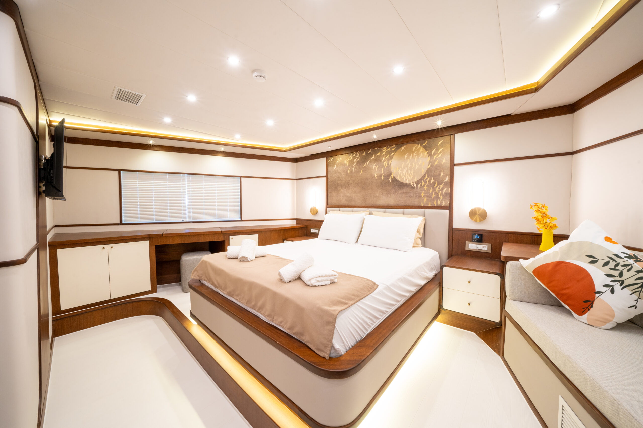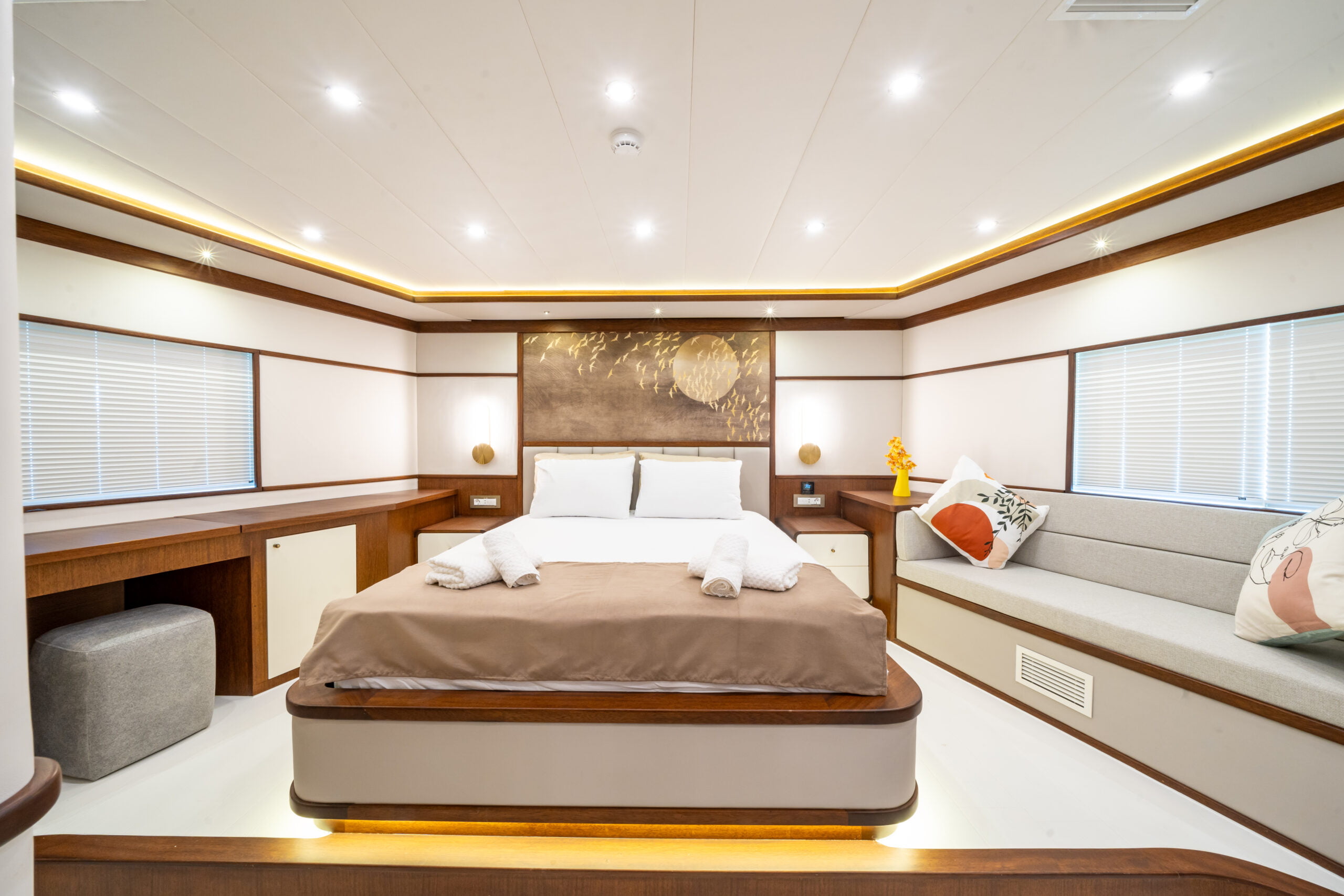 It is 23 meters long and 6.60 meters wide. Completed in 2023, it offers guests a wonderful blue cruise with luxury and comfort in mind.